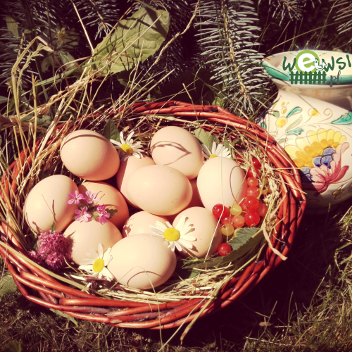 Pyszne, ekologiczne jaja od Państwa Abramowskich. Jajka od niedużej kurki rasy lohman. Gospodarz do barwienia żółtka używa wyłącznie nagietka, nasion traw oraz natki pietruszki, dlatego żółtko ma mniej intensywny kolor. W zasiewach Pana Dariusza przeważają owies i żyto najbardziej dostosowane do uprawy ekologicznej, ale jest również nieduży areał pszenicy i jęczmienia, w celu wzbogacenia diety kur niosek.