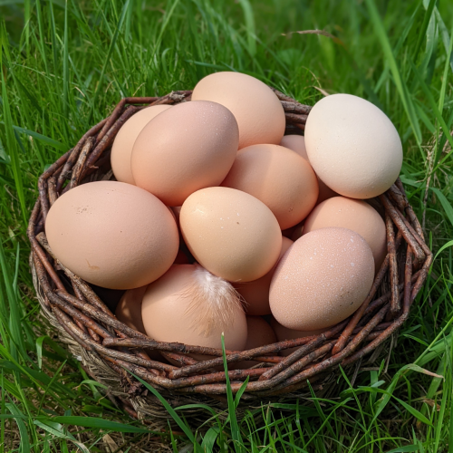 Jaja od kur znających wolność. Kurki karmione są paszą własną. Stosujemy barwniki naturalne – w postaci suszu z nagietka, papryki oraz ziół. Dalej to zboża, tylko rodzimej produkcji, a cześć od lokalnych rolników. Wszystko badane pod kątem odżywczym. Lokalnie, Polsko, zdrowo, czysto i bezpiecznie dla Konsumenta.