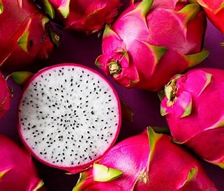 Smoczy owoc, znany również jako pitaya lub pitahaya. Roślina, z której pochodzi owoc, jest rodzajem kaktusa z rodzaju, który obejmuje około 20 różnych gatunków. Owoc ten ma charakterystyczny wygląd – zewnętrzną skórkę pokrywają łuski w kolorze pomiędzy czerwienią z różem, które otaczają miąższ. Miąższ jest biały lub kremowy, delikatny i soczysty, z licznymi, drobnymi, czarnymi nasionami. Smoczy owoc ma słodki, delikatny smak, który można określić jako „tropikalny”. Przypomina skrzyżowanie kiwi z gruszką lub kiwi z arbuzem. Usunięcie miąższu owocu jest łatwe i robi się to podobnie jak z awokado. Za pomocą łyżki wyjmij miąższ. Następnie odwróć sprawdzając, czy nie ma pozostałości czerwonej skóry i pokrój np. w kostkę.